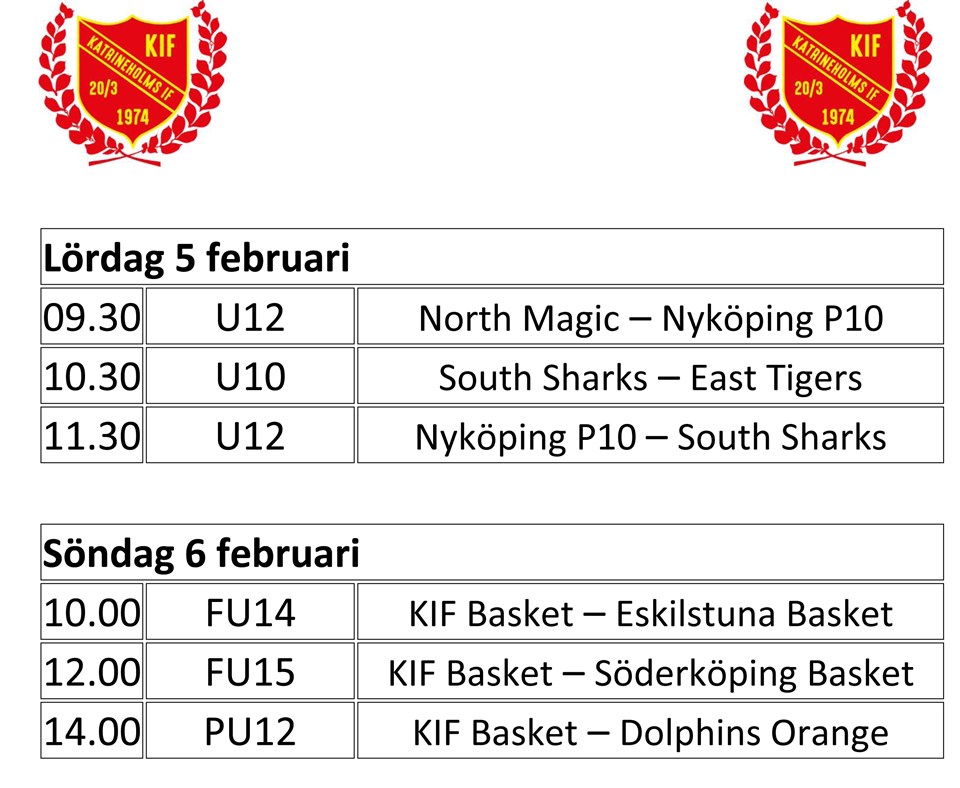 Nya matchtider, lördagen den 5 februari Helgens matcher 5-6 februari, Nyhemshallen