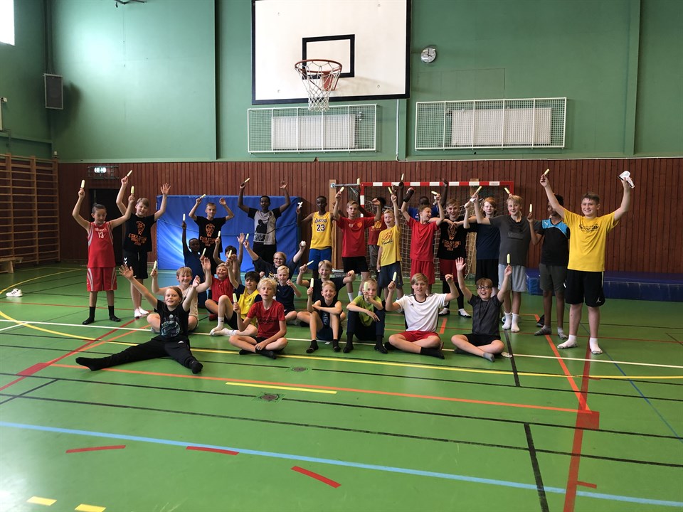 Den här veckan är kif med på Lyckliga gatornas aktiviteter och kör basket!