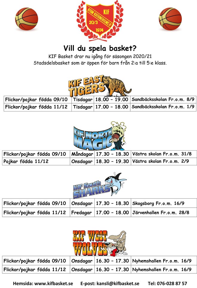 På grund av dubbelbokning av kommunen ändras vår planering lite för helgen som kommer. Vi kommer bara vara i Nyhemshallen, endast fredag och lördag och uppstarten gäller endast KIF:s flickor och pojkar födda 07 & 08 Fredag kl.18.00-20.00 (Hämtning kl.20.00) Lördag kl.09.00-16.30 (Hämtning kl.16.30) Kl.13.00 Lunch: KIF bjuder på Pasta och italiensk korvgryta samt dryck (Det finns fläskfritt) · Föräldrar får vänta kvar utomhus vid hämtning. · Alla som har tar med basketboll & tennisboll · Glöm ej vattenflaska och frukt (samt några extra par strumpor och extra träningströja på lördagen) · Alla får en matlåda och dryck gratis på lördagen. MVH Coacherna Fl. och Po. 07 & 08