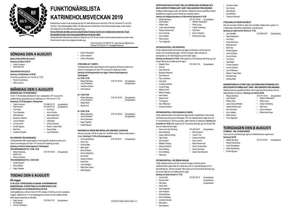 Danståget utgår för kiffare i år. Funktionärslista Katrineholmsveckan 2019 ver 2.