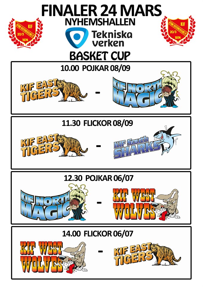 Herr div 3 KIF Basket - Arvika Basket 46-71 PU16 Motala - KIF Basket 67-60 Tekniska verken Basket Cup FU12 West Wolves - South Sharks 40-11 West Wolves - Nyköping 40-12 Nyköping - East Tigers 14-33 PU12 Nyköping - West Wolves 16-50 North Magic - Nyköping 72-8 South Sharks - North Magic 15-48 North Magic - West Wolves 58-7 F/PU10 East Tigers Po - East Tigers Fl 20-22 North Magic Po - South Sharks Fl 18-10 Katrineholms IF 5 mar 2018 0kommentarer
