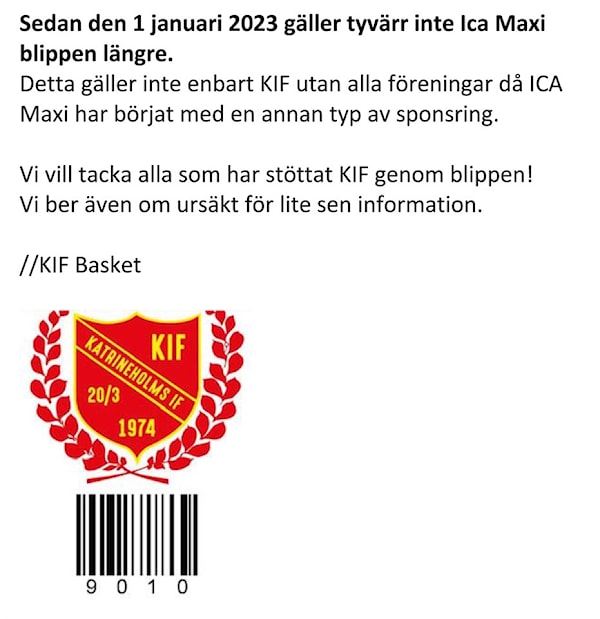 Ok, så då kan man sluta blippa när man handlar. Men varför sluta, många bäckar små eller har föreningen fått annan sponsring:)