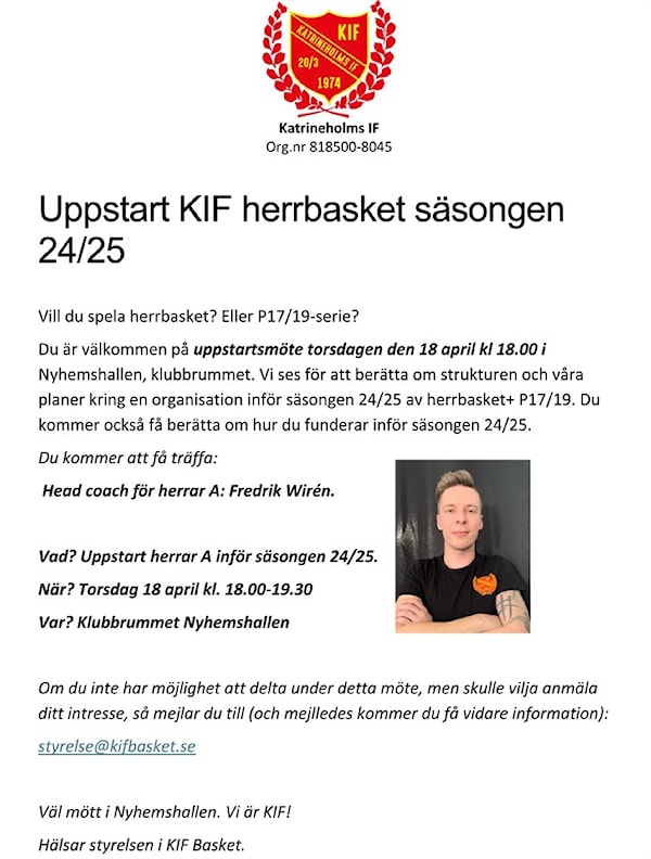 Om du inte har möjlighet att delta under detta möte, men skulle vilja anmäla ditt intresse, så mejlar du till (och mejlledes kommer du få vidare information): styrelse@kifbasket.se